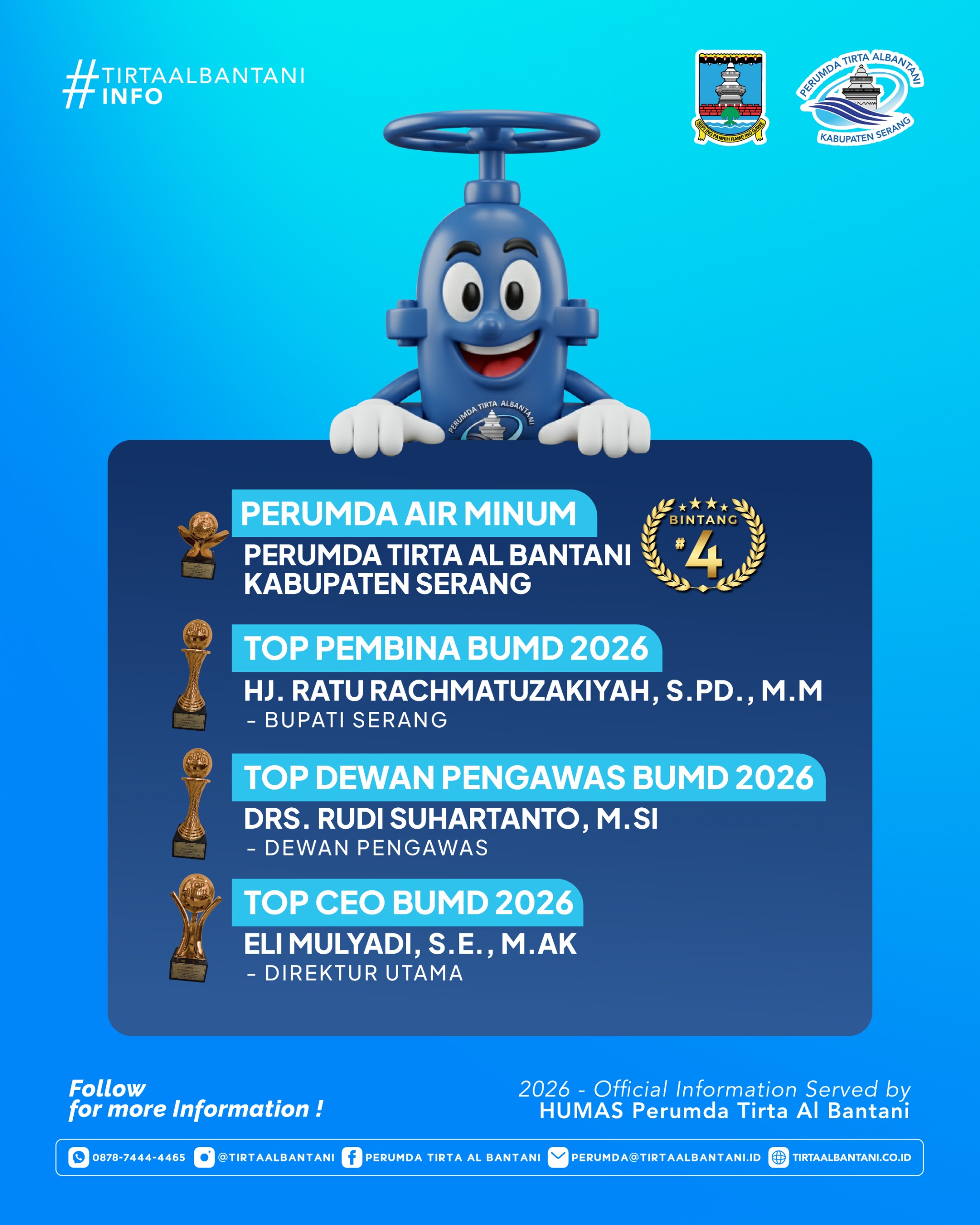 Perumda Tirta Al Bantani Kabupaten Serang kembali menoreh pencapaian membanggakan di ajang Top BUMD Awards 2026