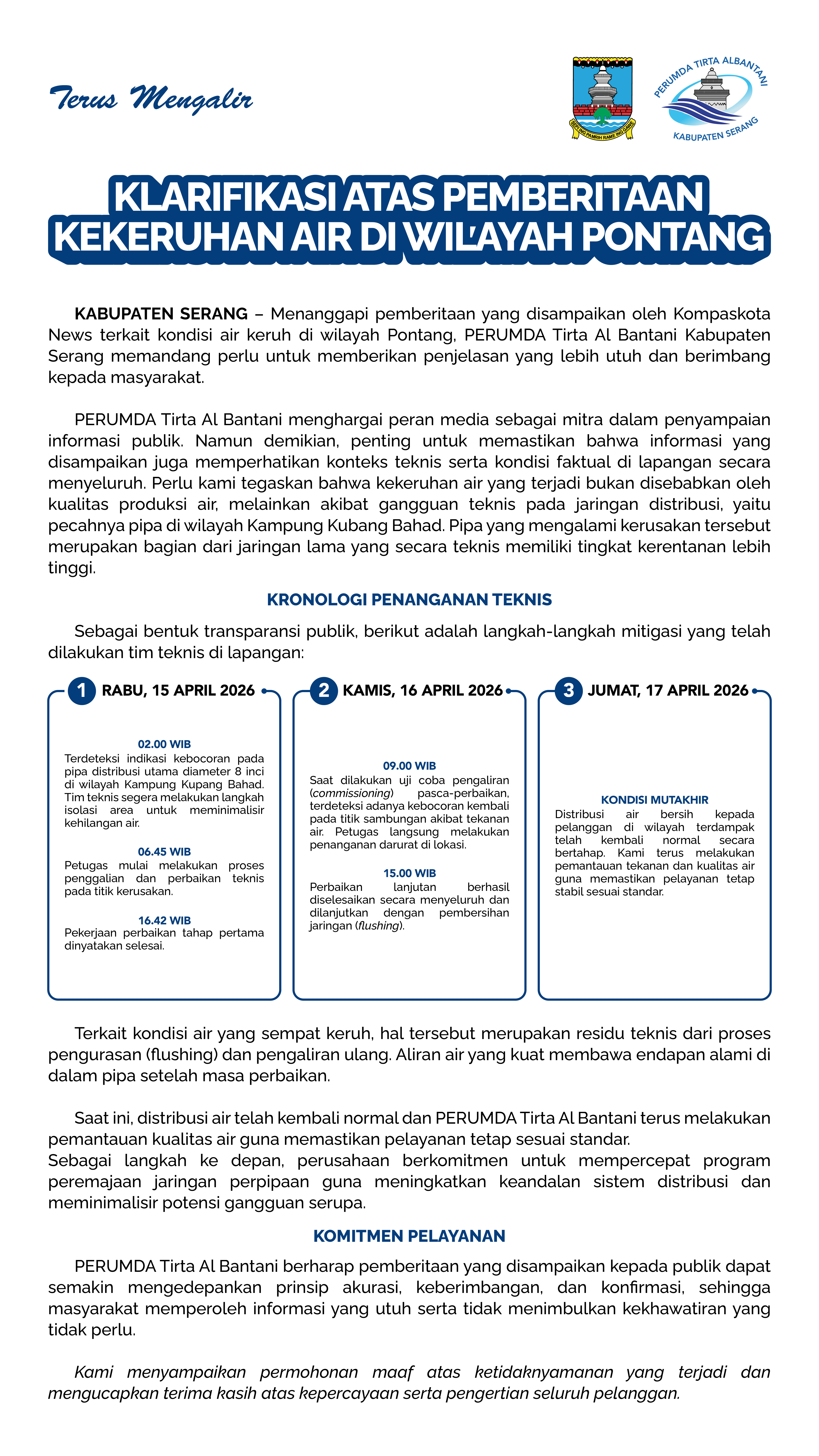 Klarifikasi Air Pontang 2026